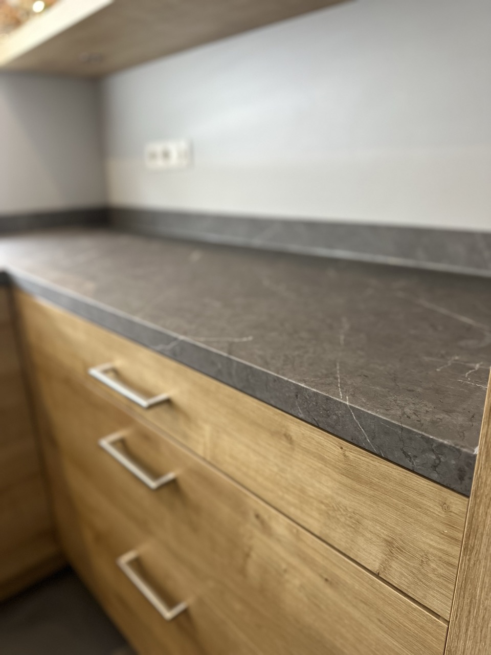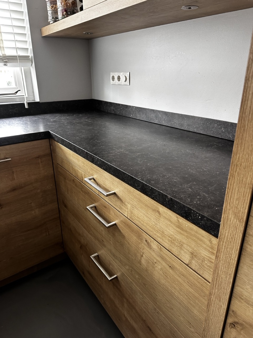 In Sliedrecht hebben we dit aanrechtblad een hele frisse make-over gegeven. Het zwarte blad hebben we gewrapt in een elegante, lichtgrijze marmerlook. Het resultaat? Een keuken die er meteen lichter en moderner uitziet, helemaal van nu!