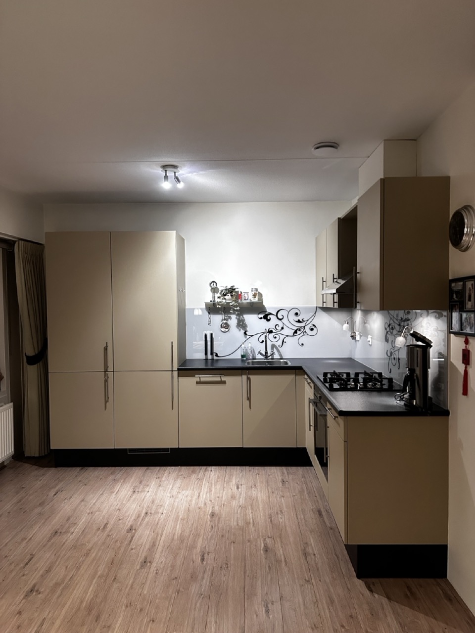 In deze keuken in Delft hebben we een hele mooie verandering aangebracht. De witte en bruine kastjes hebben we gewrapt in een warme beige zandkleur. Het resultaat is een frisse, moderne uitstraling die perfect past bij deze gezellige ruimte. De keuken voelt nu helemaal nieuw en toch lekker huiselijk aan!